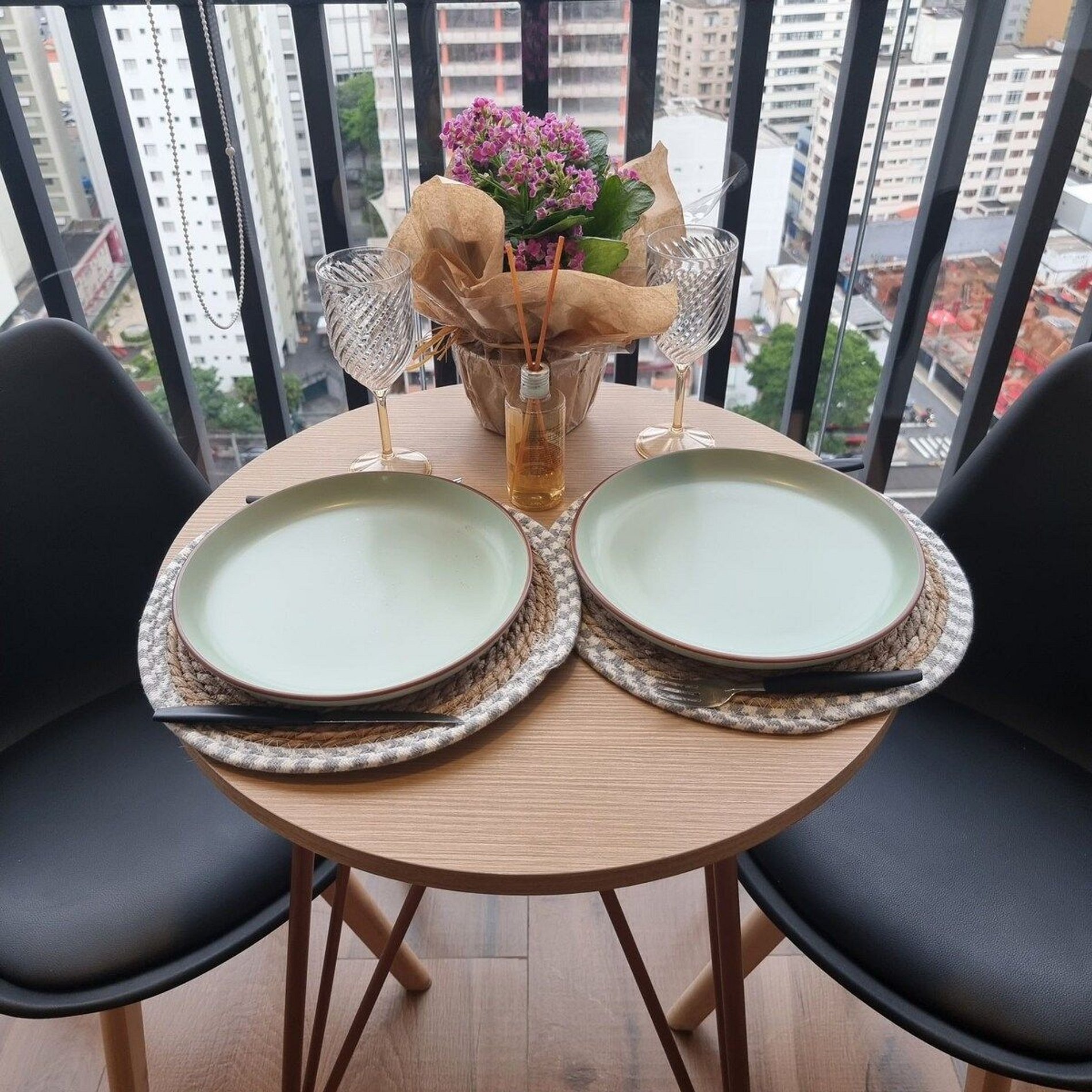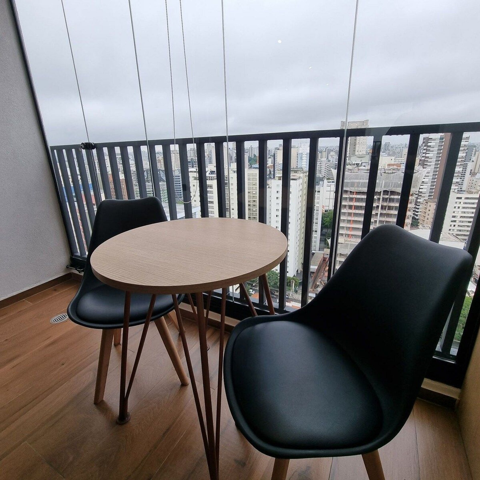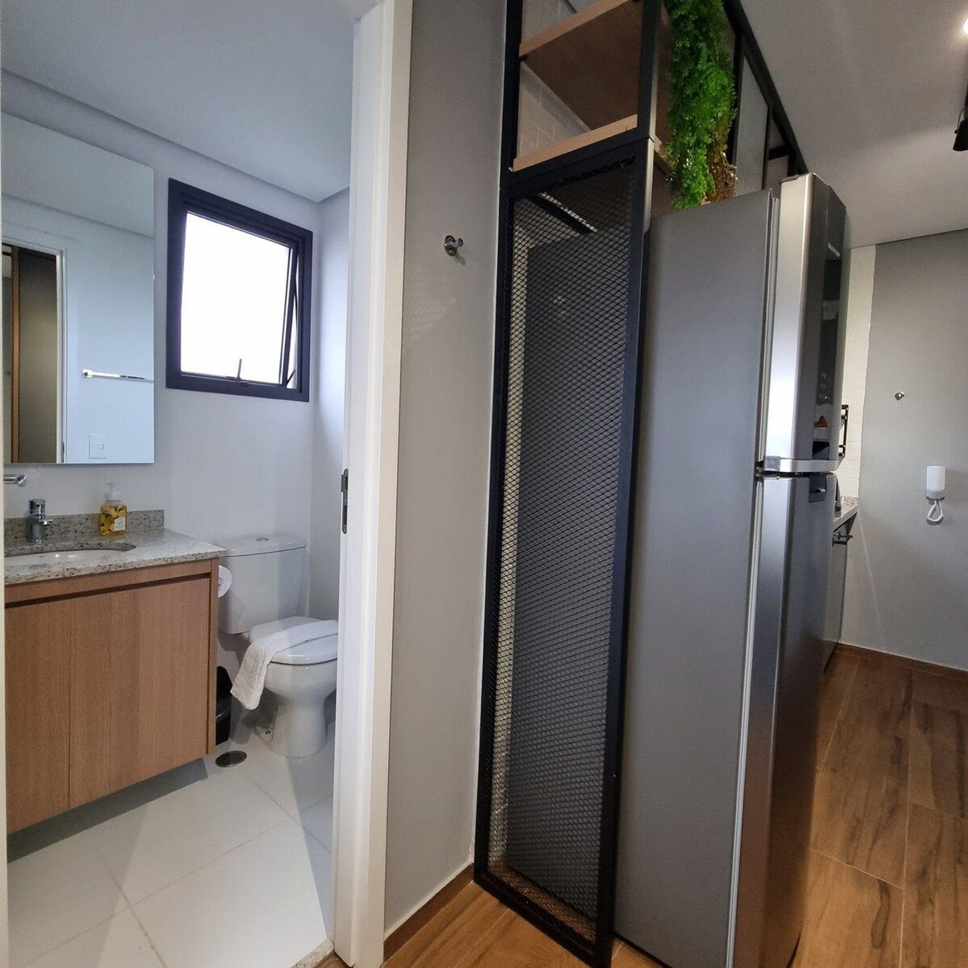This sophisticated and modern studio apartment, with a privileged location next to the Paraíso subway station (Blue Line) has its own style and an incredible view of the city that will take your breath away!! Complete and prepared for short or long-term stays, it has a queen-size bed, private bathroom, dining table on the balcony where you can admire the city's sensational skyline.Studio apartment has 27m².