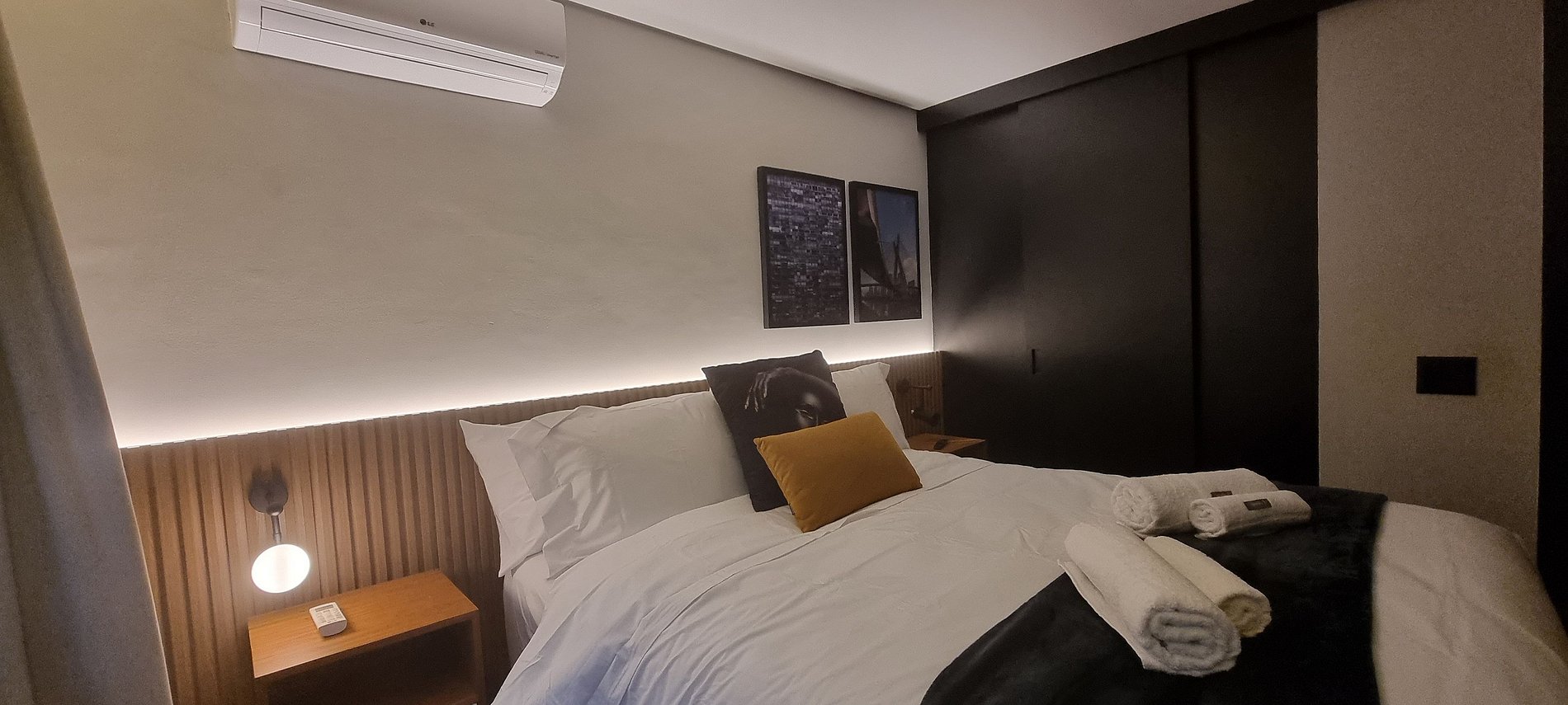 Modern and elegant, located in the most exclusive area of Itaim Bibi, with 40 m2 and accommodating up to 3 guests. Its refined space, with modern and elegant furniture, makes the environment pleasant and cozy at the same time. Fully equipped kitchen with dining counter, bedroom with queen-size bed, Smart TV, closet. Bathroom with shower and hairdryer. Large living room with Smart TV, sofa bed, which accommodates 1 guest to sleep. Wi-Fi, parking space for 1 car. Swimming pool and gym.