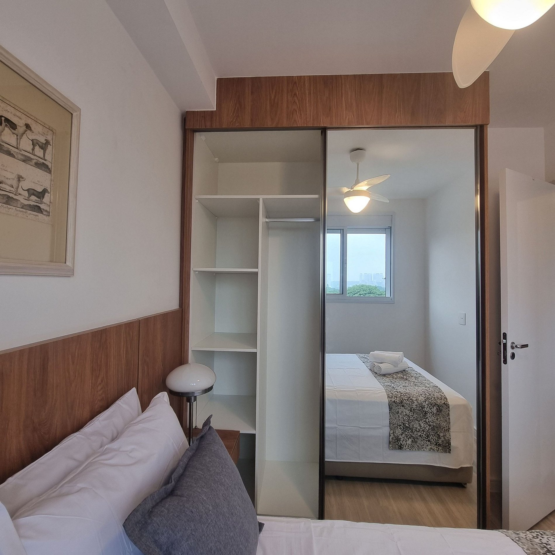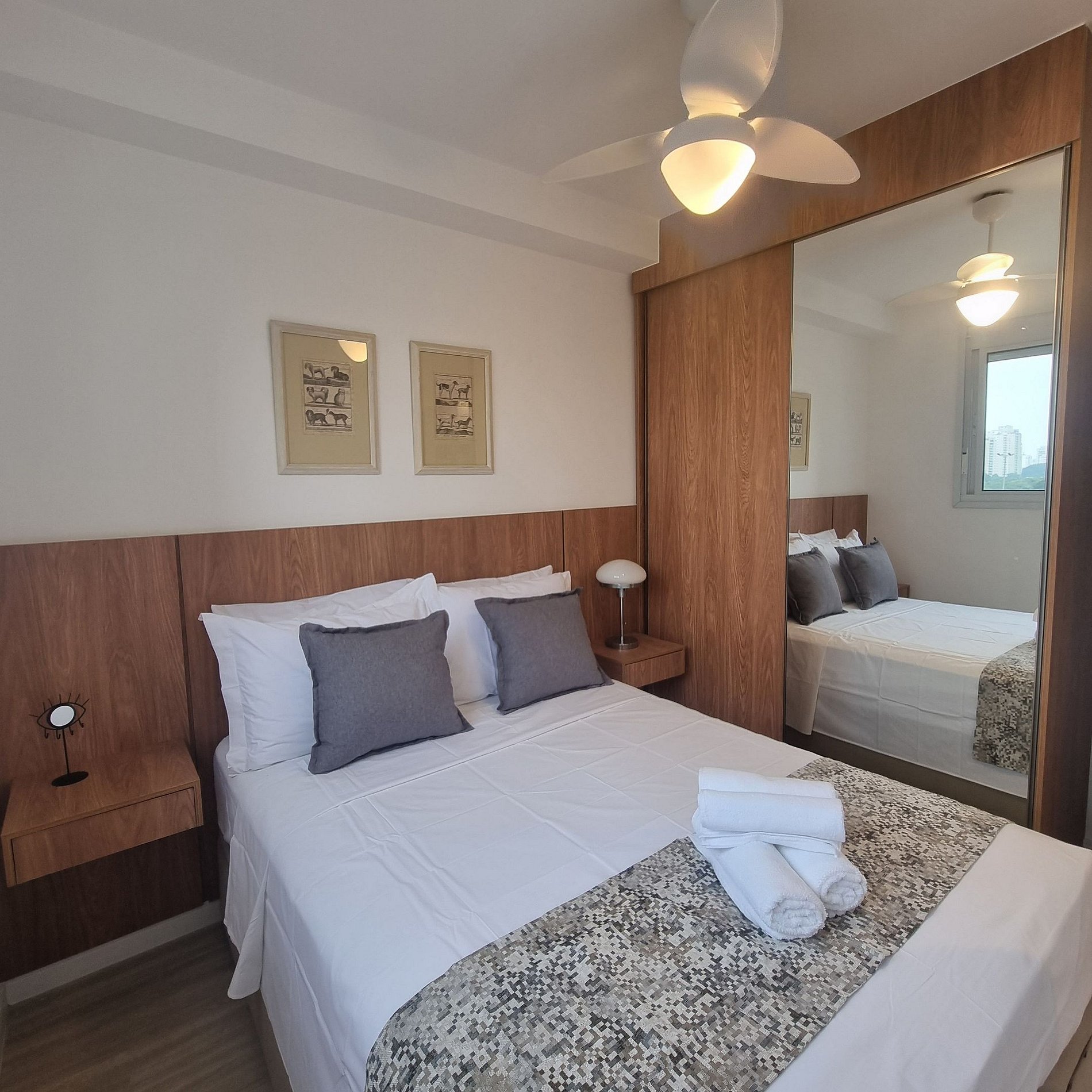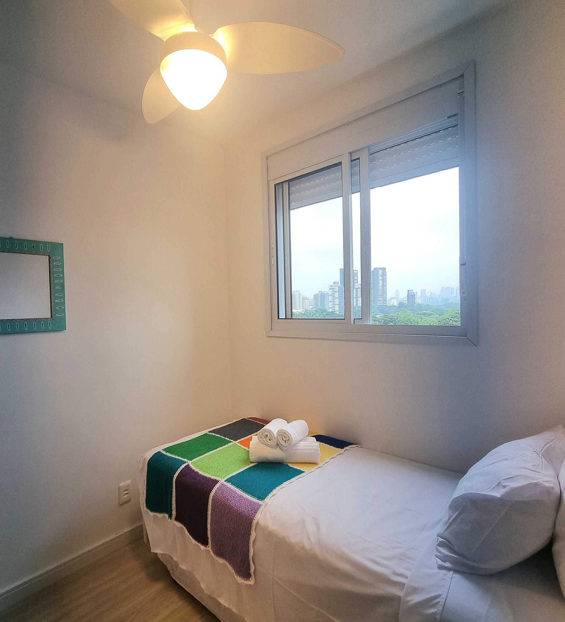 Este apartamento, le proporcionará un hospedagem aconchegante devido a localização privilegiada ao lodo do Shopping Ibirapuera e também de diversos restaurantes, lanchonetes, padarias y bares. Oferece todo lo que o hóspede necessida em sua hospedagem na questão de conforto e bem estar como enxoval completo, louças, copos, talheres e utensílios de cozinha, liquidificador, sanduicheira, microondas, máquina de lava e seca e tanque no apartamento. Possui Smart TV, señal de internet dedicada y gratuita. Ventilador nos cuartos. Não possui vaga de garagem. En caso de necesidad de garaje, existen diversas opciones de estaciones de pago en el entorno del predio. Portaria 24 horas y fechadura digital.