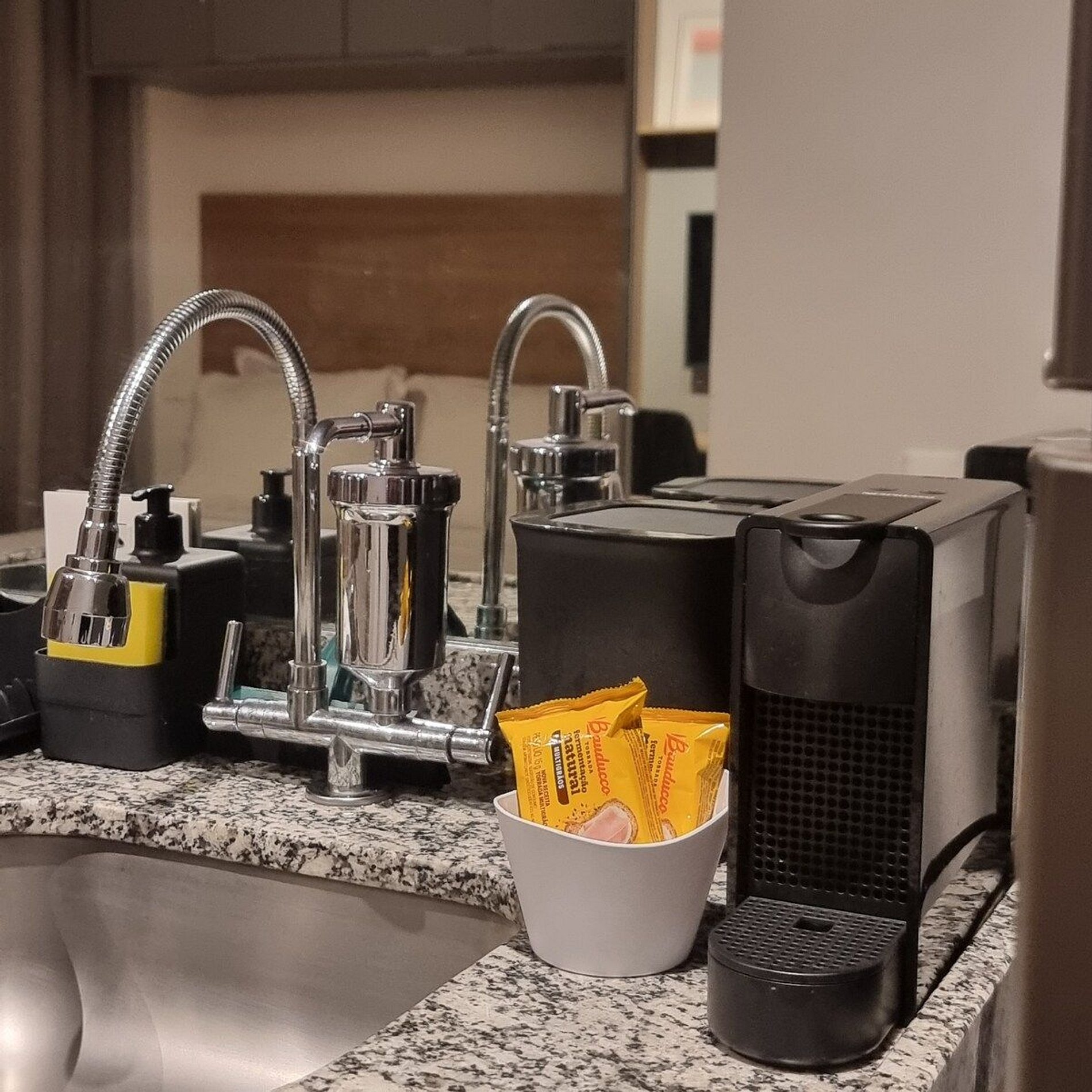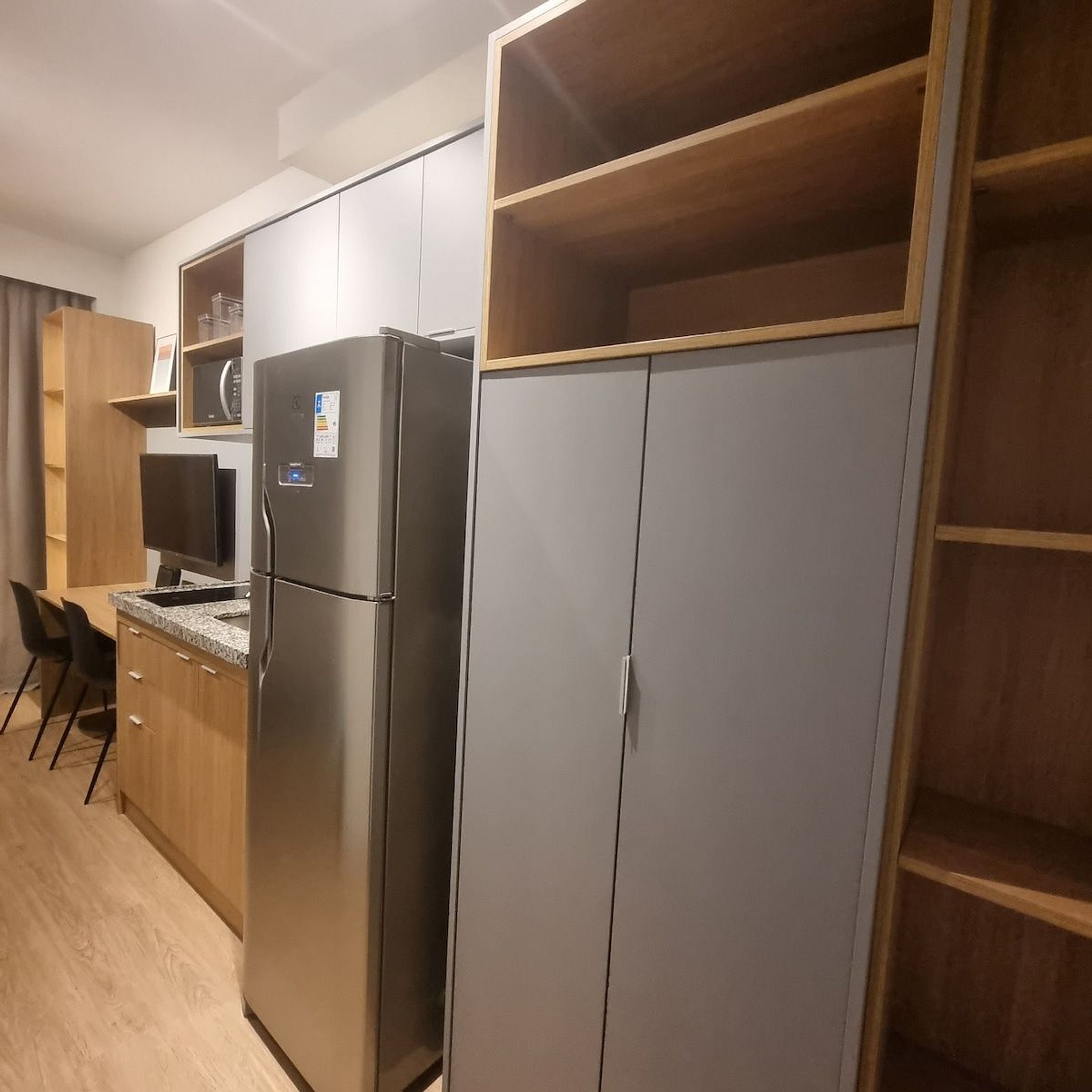 Este studio, possui a acomodação ideal para quem busca uma hospedagem tranquila. Acomoda até 2 pessoas em cama de casal tamanho padrão, banheiro amplo e cozinha equipada com tudo que precisa para preparar suas refeições, como: louças, copos, taças, talheres e utensílios de cozinha, geladeira, sanduicheira e microondas. Para seu conforto possui máquina de café Nespresso, torneira com filtro de água, internet dedicada e gratuita e Smart TV, ar condicionado, secador de cabelo e cortina Black-out. Localizado ao lado de uma das melhores padarias do bairro onde poderá comprar pães quentinhos e muito mais ou fazer qualquer uma de suas refeições. Caminhando apenas 10 minutos você chegará no Shopping Metrô Santa Cruz. Conta com diversas opções de restaurantes, lanchonetes, padarias e bares.