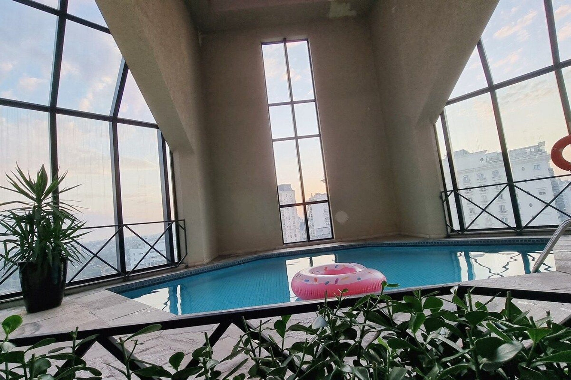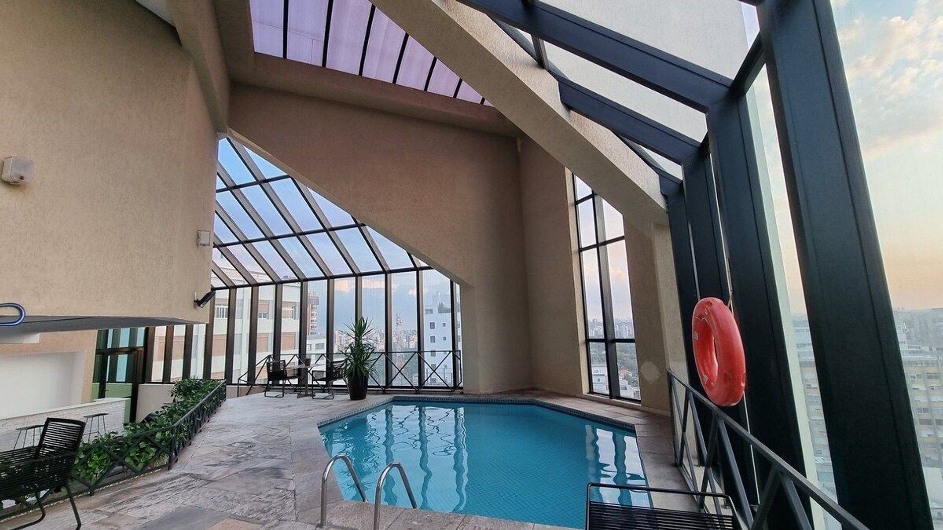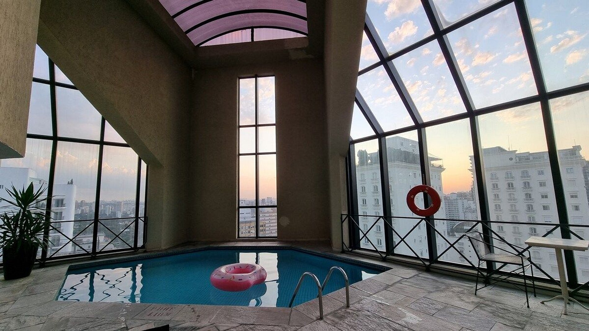 Apto em Flat de 1a linha c/ 01 vaga de garagem incluída, localizado no principal quadrilátero de luxo do Jardins. Ambientes arejados e iluminados e uma porta de correr que possibilita separar ou integrar a suíte com a sala, tornam este apartamento de 32m2 especialmente aconchegante, amplo e versátil. Uma mini cozinha equipada com o itens necessários para hospedagens curtas ou long stay. Os hóspedes podem usufruir da piscina coberta com solarium, sauna, academia e terraço com fogo de chão.