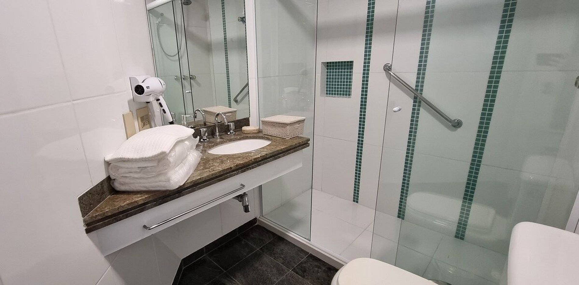 CHECK-IN Por motivo de segurança e para agilizar seu check-in, é de extrema importância o envio do nome completo dos hóspedes e número do documento que será apresentado na recepção. A demora ou falta desses dados implicará na demora do check-in. Para hospedagens mensais, cobramos uma taxa extra para troca do enxoval semanalmente. A troca será semanal contando do dia do Check-in. Caso queira que a troca seja feita em outro dia da semana, favor nos avisar por mensagem. O valor da Taxa de Lavanderia é R$70,00 reais para o Enxoval em uso. Para a troca do enxoval quando houver mais de 02 hóspedes, será cobrado o valor de R$35,00 para cada hóspede extra. Para lavagem extra do Cobertor ou Capa do Edredon, durante a hospedagem o valor é de R$25,00 por peça. O pagamento deve ser feito por Pix ou depósito cujos dados serão informados durante sua hospedagem. Quando necessário o Pagamento pode ser feito em dinheiro e deve ser combinado com a co-anfitriã como efetuar o pagamento. Há um restaurante no andar térreo, onde é servido café da manhã. Este café da manhã é opcional e deve ser pago diretamente no local. É também uma ótima opção happy hour e jantares. Informe-se na recepção sobre o horário de funcionamento do restaurante e valor do café da manhã. IMPORTANTE - PROTOCOLO Covid-19: Em época de Pandemía do COVID-19, é importante saber que o Hotel adota Protocolo Sanitário conforme determinado pela Rede Atlântis. LIMPEZA DOS APARTAMENTOS DURANTE PANDEMÍAS: A Limpeza deve ser solicitada à Recepção pelo hóspede e é importante agendar o horário. Por questões de segurança do Protocolo, os hóspedes devem permanecer fora do apartamento durante o serviço de limpeza. Horário da limpeza vai até as 16h00 as 2as, 4as e 6as feiras. ÁREAS COMUNS COMPARTILHADAS: A Piscina, Sauna e Academia, estão com acesso limitado no número de pessoas ao mesmo tempo. Favor verificar com a Recepção pois dependendo do espaço que você quiser utilizar é necessário agendar ou deixar avisado de forma evitar aglomeração de pessoas.