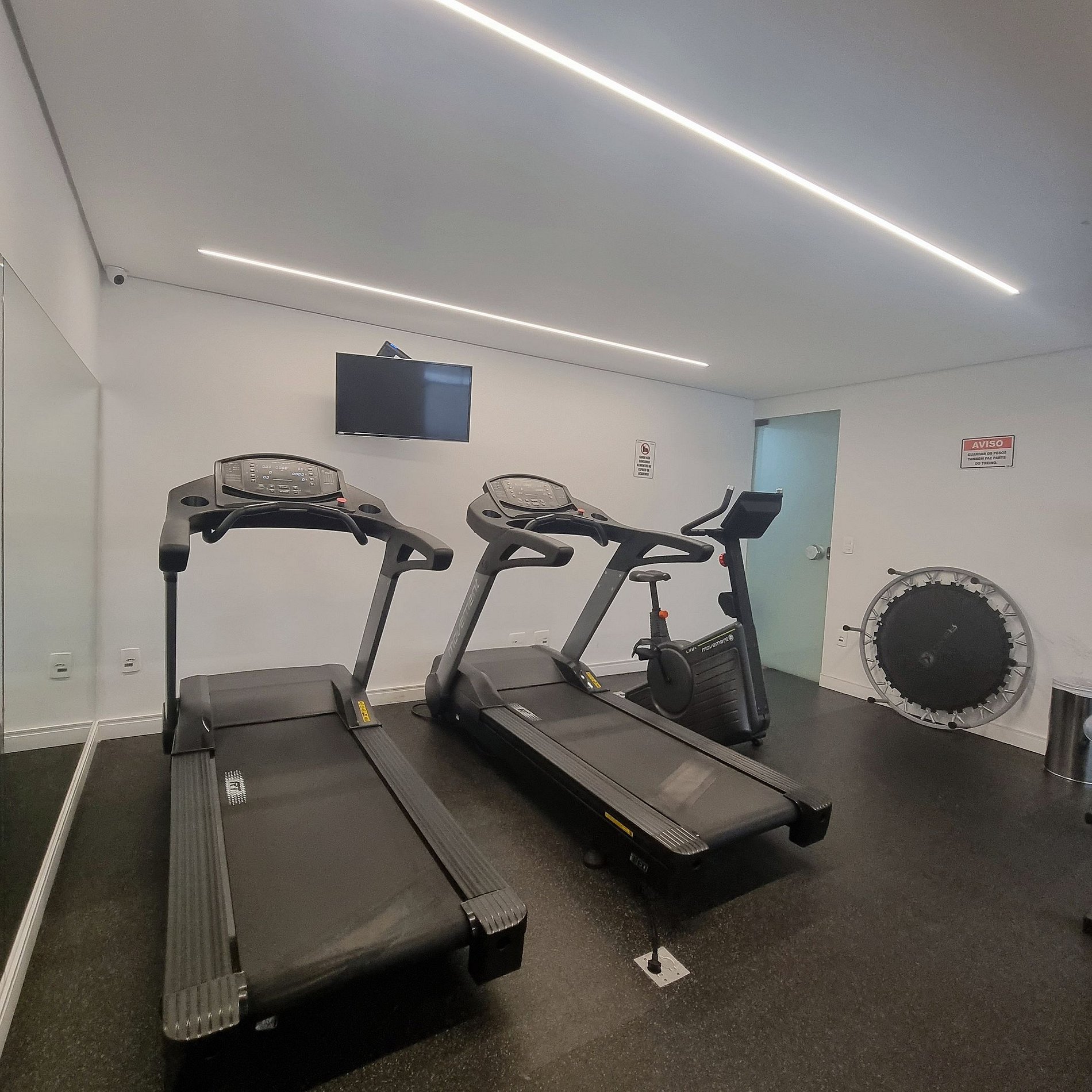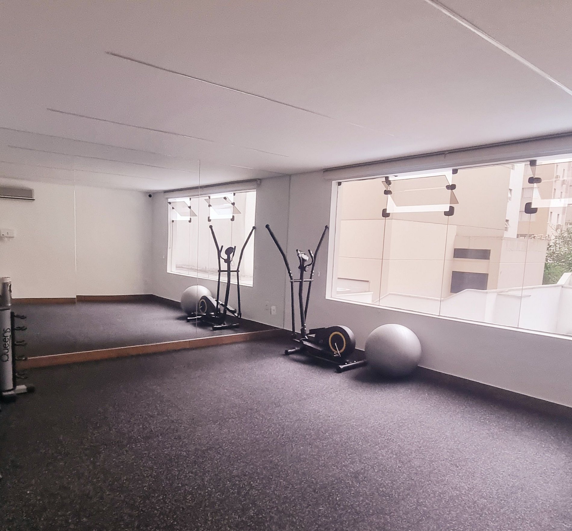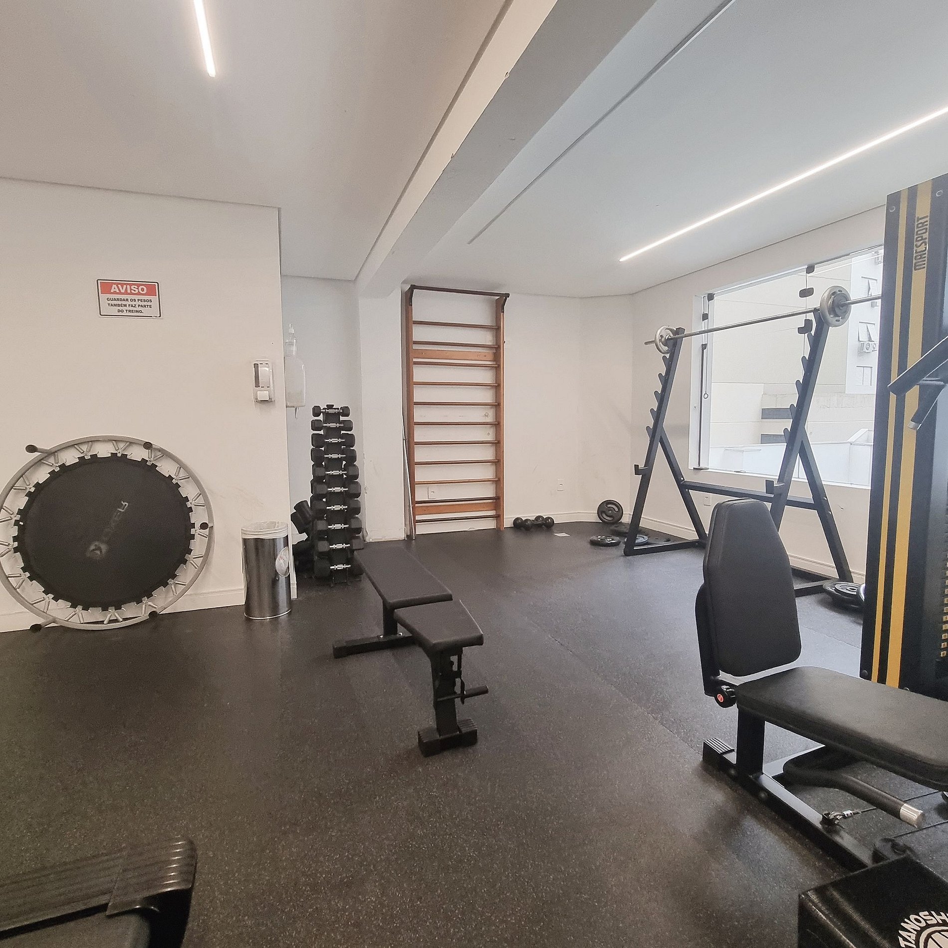 Piscina e academia de uso compartilhado.