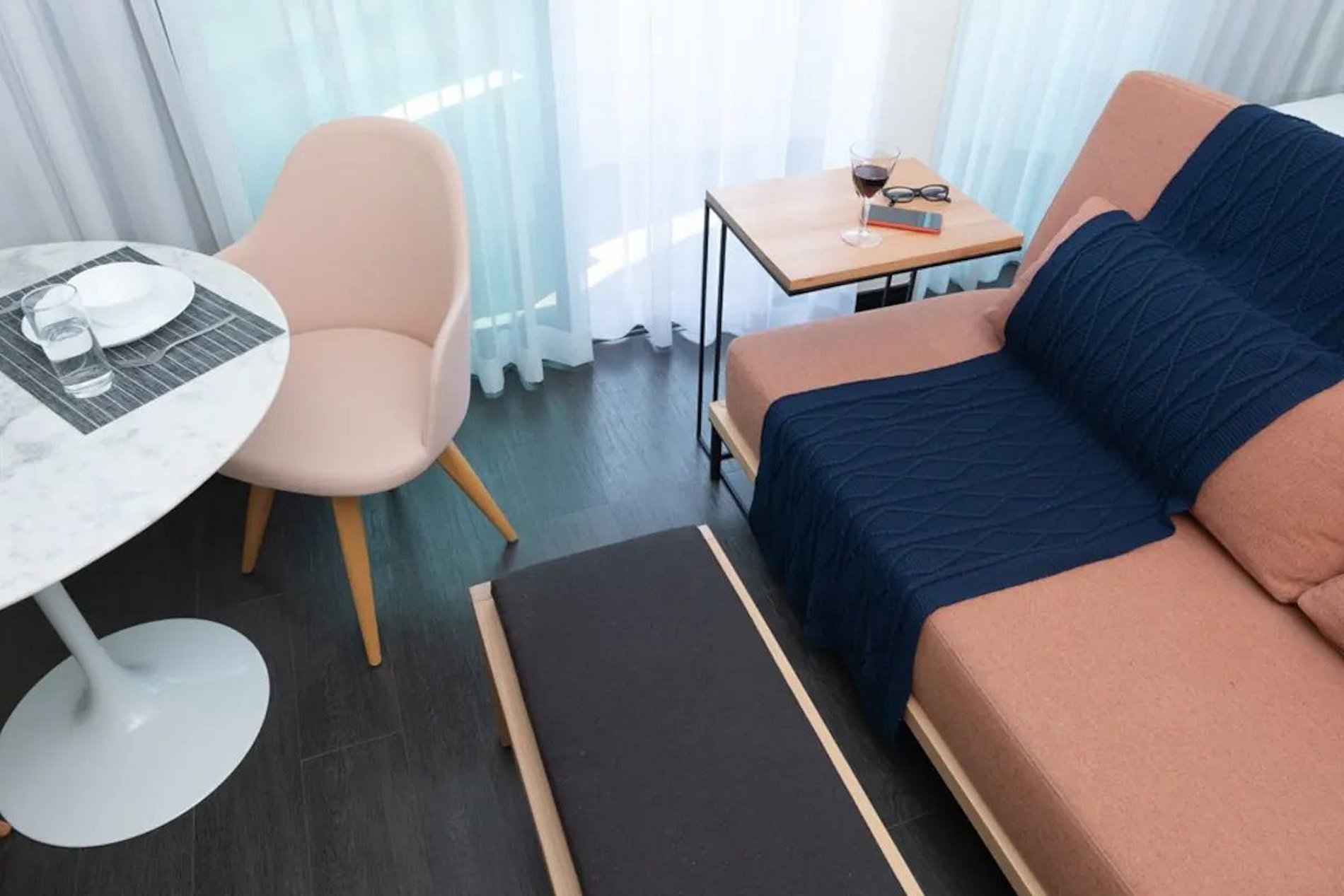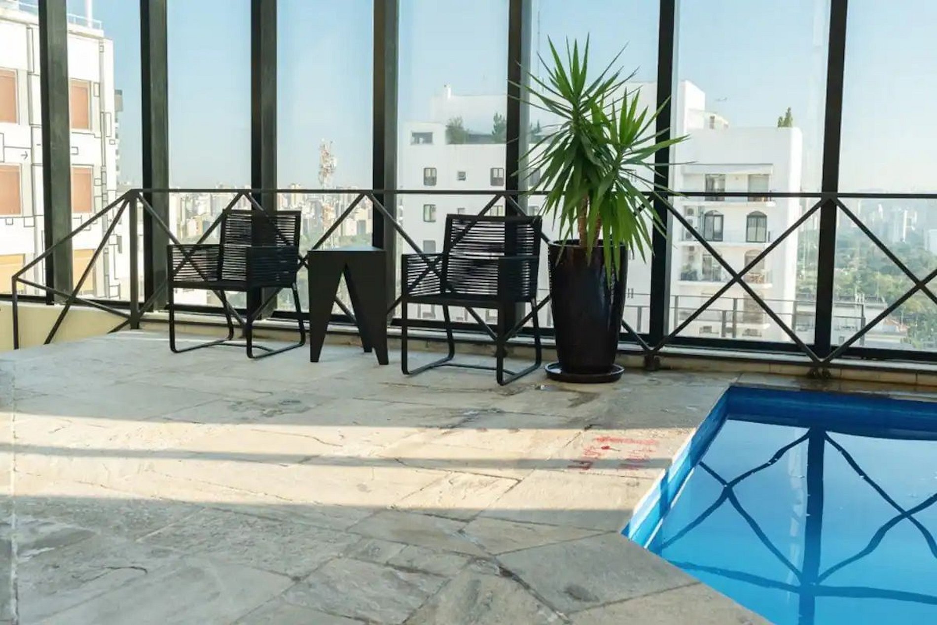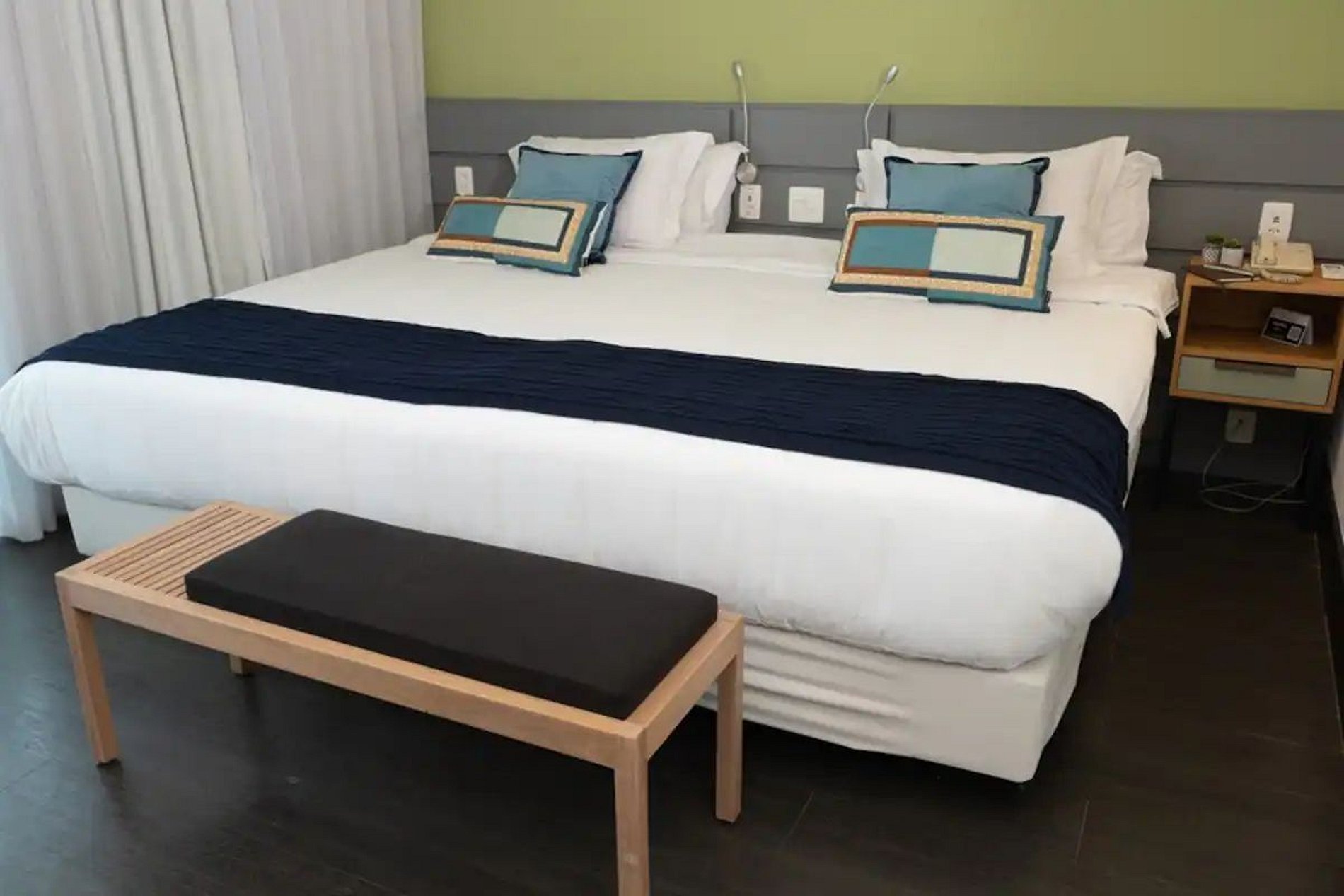 O apto particular localizado no Flat Radisson com varanda voltada para a Rua Oscar Freire. Possui cama de cama de Casal Mega King (2,00 x 2,40m) ou pode ser configurada com 02 camas de Solteiro King e conta também com um sofá-cama que acomoda mais 02 hóspedes. Ar condicionado, TV 32" com acesso à canais de TV à cabo, mesa de jantar/trabalho, frigobar, ferro e tábua de passar roupas. São fornecidas as roupas de cama e banho, travesseiros e cobertores. A troca do enxoval (roupas de cama e banho) são realizadas em hospedagens à partir de 7 diárias. Toalhas e troca de enxoval antes de 7 dias é cobrada uma taxa extra e deve ser solicitado com até 24 horas de antecedência. Estacionamento Gratuíto com manobrista para um carro no próprio Flat. Os hóspedes podem usufruir da piscina, solário, academia e sauna localizados no último andar do prédio onde é possível apreciar uma linda vista da cidade.
