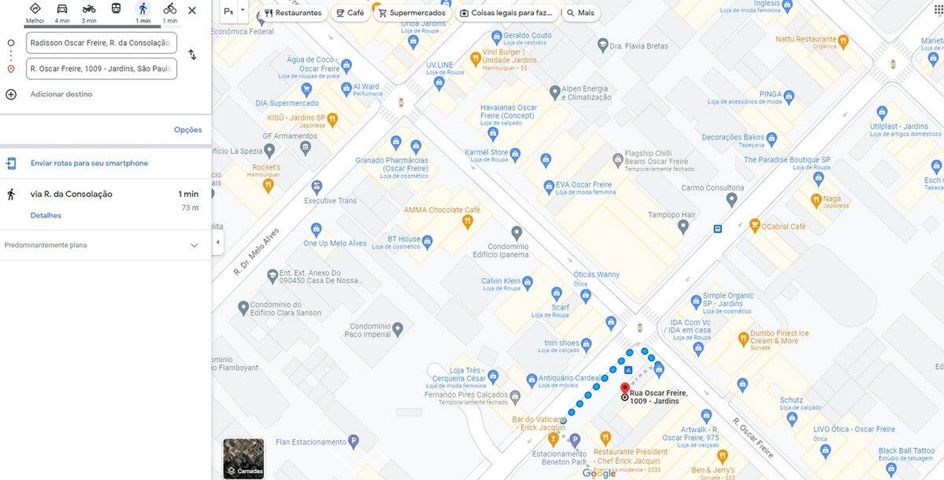 Nos arredores encontram-se as mais variadas lojas de grifes e serviços. Está situado há 20m da Rua Oscar Freire onde estão as melhores lojas da cidade de São Paulo, bem como os mais descolados e famosos restaurantes, aconchegantes cafés, deliciosas padarias e farmácias de todos os tipos. Os principais polos econômicos da cidade como a Av. Paulista e Av. Faria Lima, estão localizados cerca de 2 km. Para quem busca atrações culturais e de entretenimento pode visitar diversos pontos próximos como o museu do Masp, Instituto Moreira Salles, cinemas, teatros, reconhecidas galerias de arte e livrarias além de shoppings da região. Sempre terá algo por perto para seu entretenimento!
