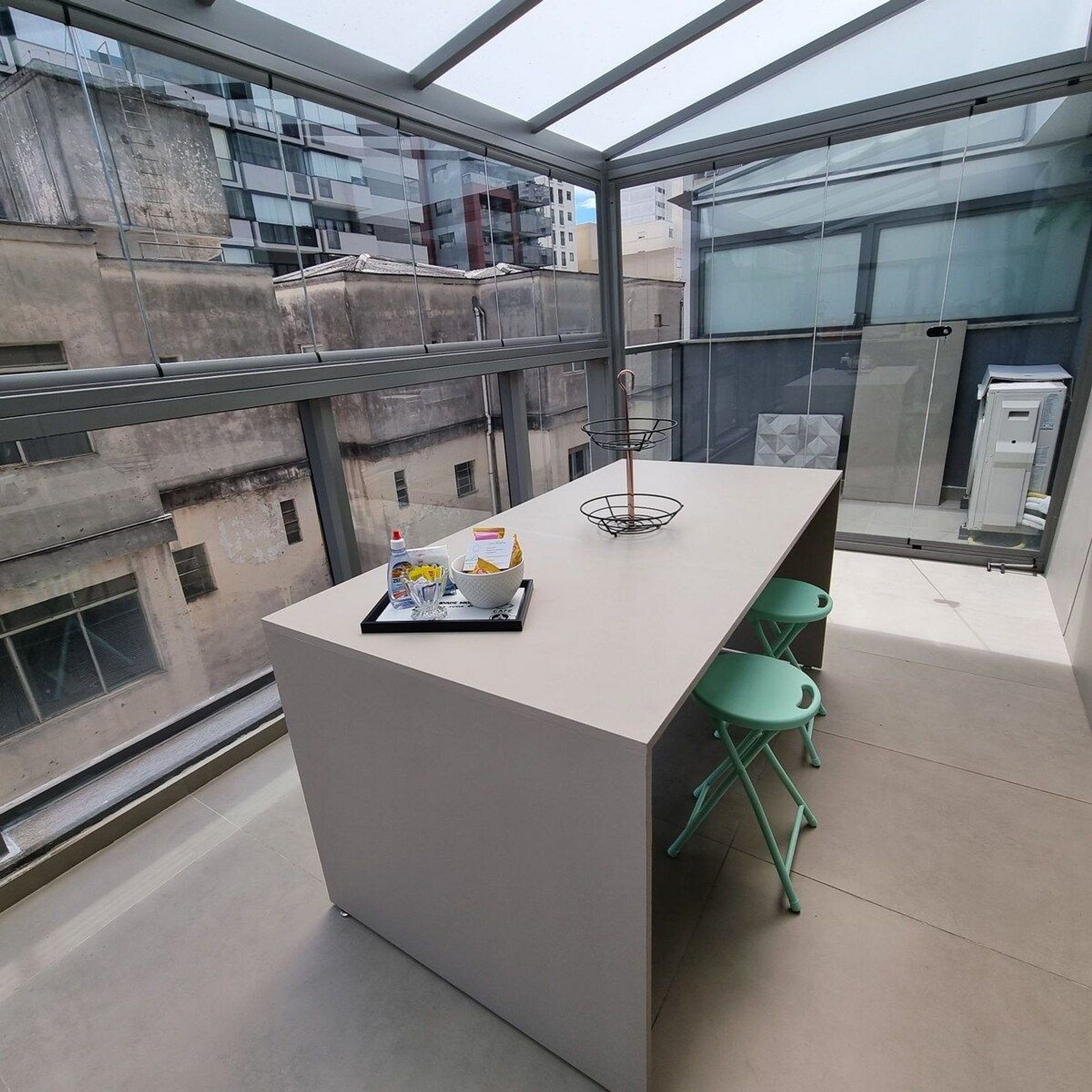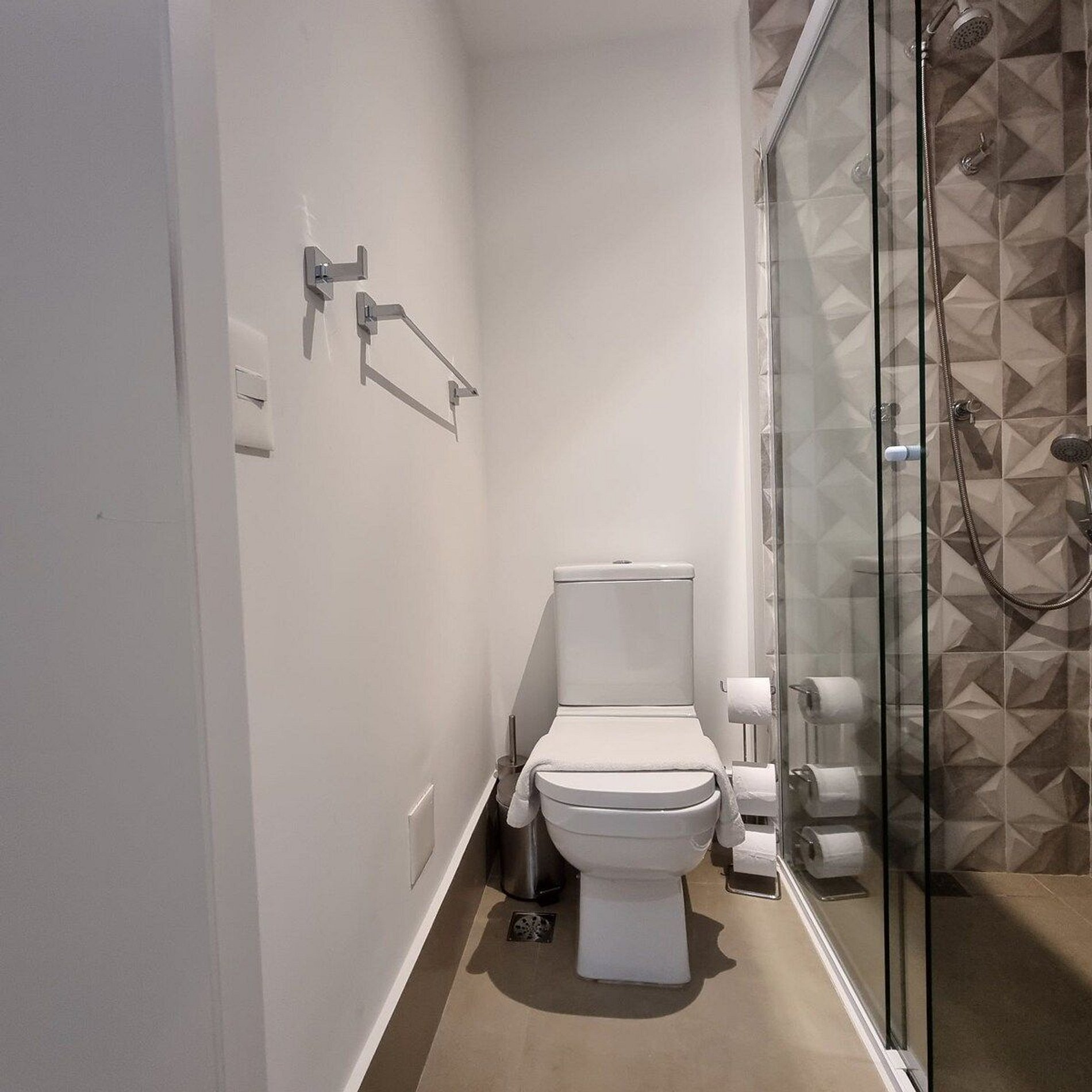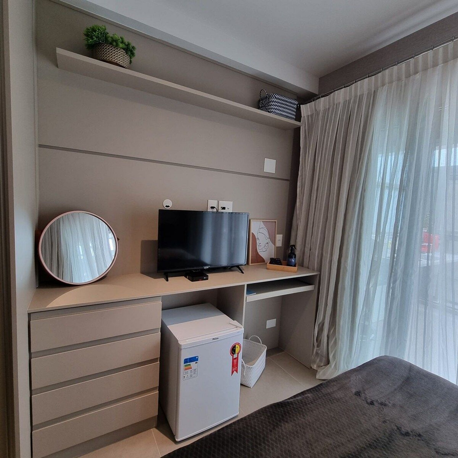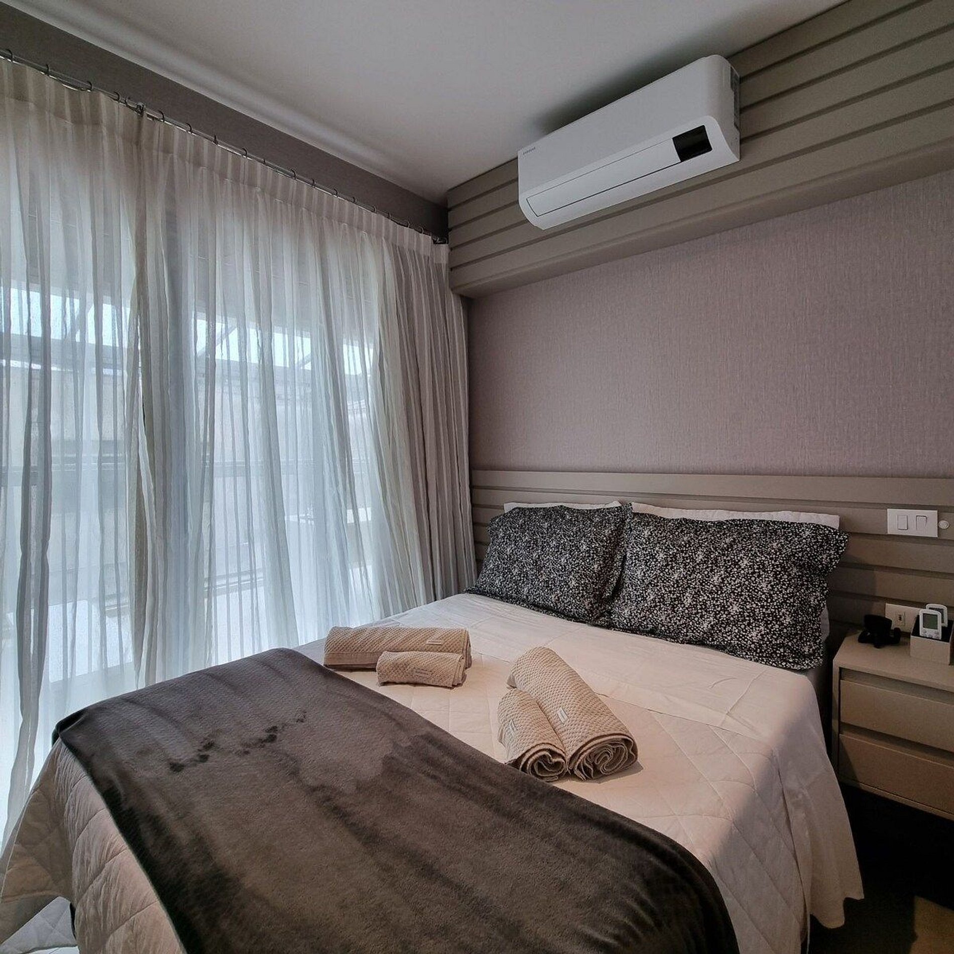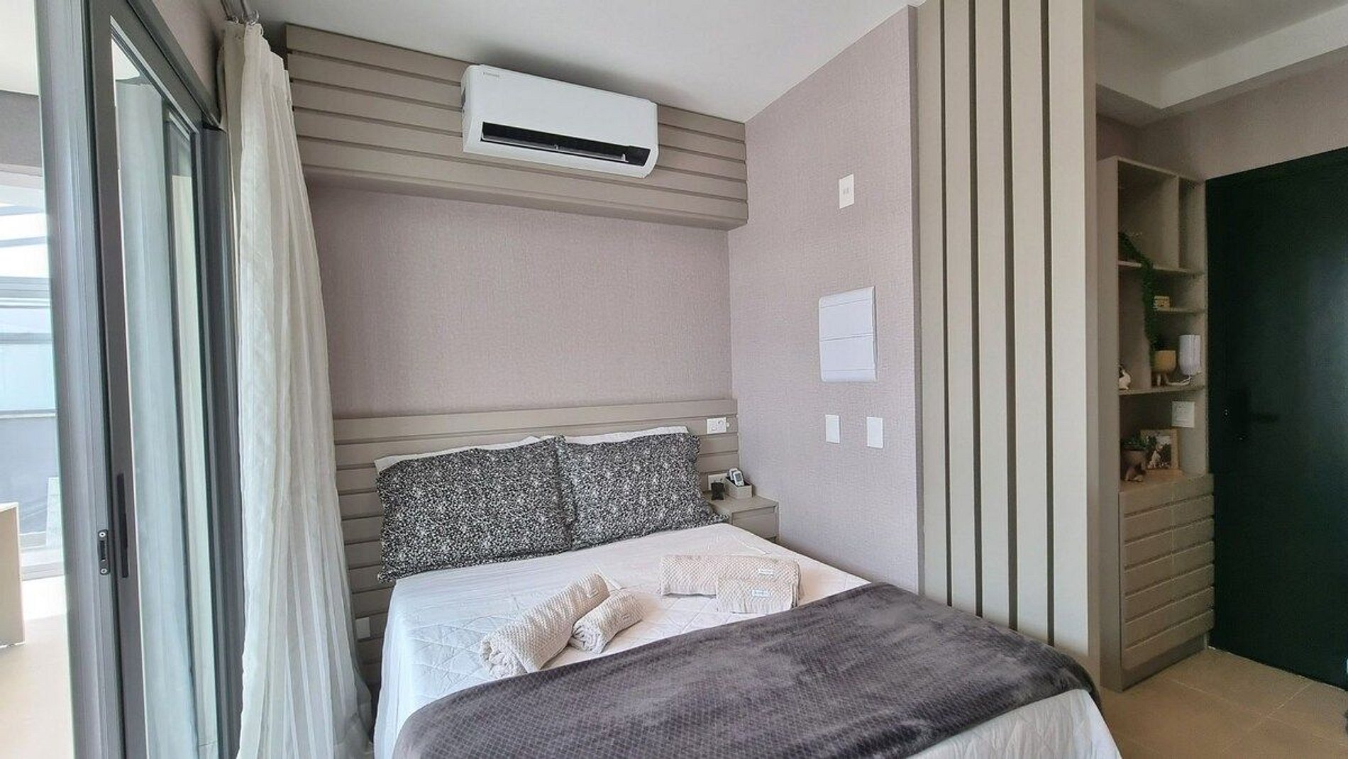 O apto particular, localizado no Vitacon Oscar Freire, com 01 dormitório, com cama de casal, tamanho padrão (1,38 x 1,88m), banheiro e uma área ampla envidraçada com mini-cozinha e mesa de jantar e/ou trabalho. Possui um aparelho de ar condicionado split no dormitório e outro na área envidraçada. TV 32" com acesso aos canais de TV à cabo, frigobar, ferro de passar roupas. Para o preparo de refeições práticas e rápidas, o apartamento oferece Airfryer, sanduicheira, chaleira elétrica, louças, talheres, copos e taças e demais utensílios. São fornecidas as roupas de cama e banho, travesseiros e cobertore. A troca do enxoval (roupas de cama e banho) são realizadas em hospedagens à partir de 7 diárias. Em caso de troca de enxoval antes de 7 dias é cobrado uma taxa extra e deve ser solicitado com até 24 horas de antecedência. Estacionamento Gratuíto com manobrista para um carro no próprio Flat. Os hóspedes podem usufruir da piscina, fitness, lavanderia, co-working e áreas de convivência dentro dos horários permitidos. TV a Cabo Claro - Plano Básico