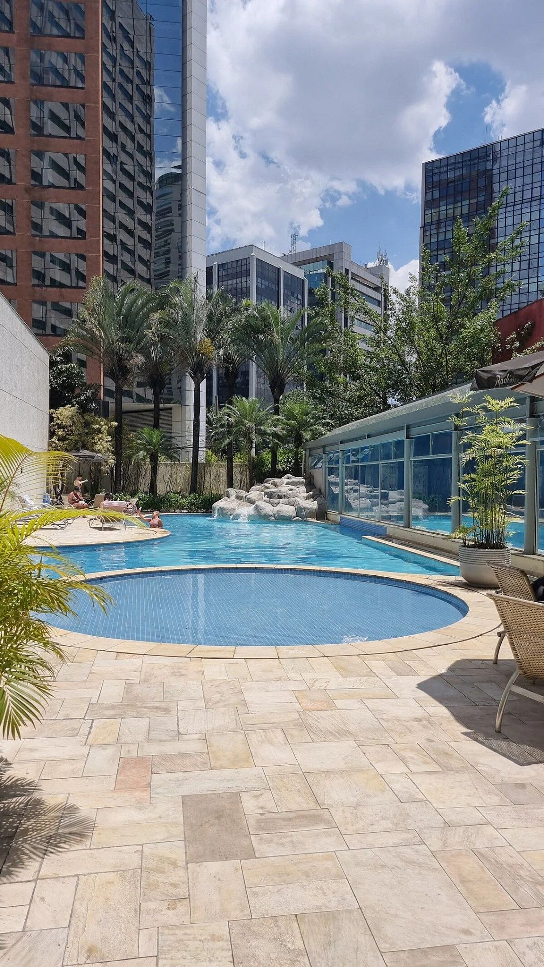 Os hóspedes podem usufruir das piscinas (externa e coberta), academia e sauna localizados no andar térreo do prédio.